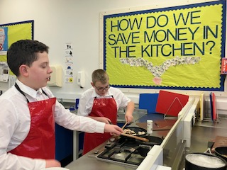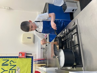 Year 8 were practising their weighing, cutting, slicing, frying and stirring in Food Tech to prepare and cook a really healthy chicken pasta dish to take home (after a little bit of cheeky tasting!).